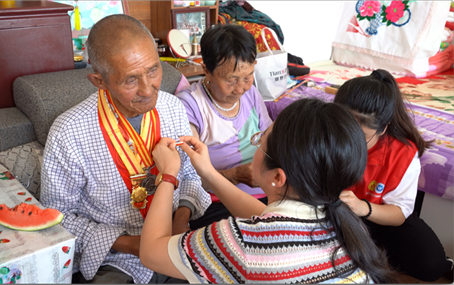 今年是中国共产主义青年团成立100周年,也是党的二十大召开的伟大时刻。为追寻红色印记,在实践学习中传承红色基因,公司“许愿计划”实践团跨越千里前往宁夏盐池县革命老区,参观了盐池县革命历史纪念园,重温了当年红军奋勇杀敌的峥嵘岁月。实践团成员前往盐池县青山乡尖山湾村看望曾参加抗日战争、抗美援朝战争的老兵—93岁的老党员侯兴芳同志及爱人李玉兰同志,在送去慰问的同时,听革命老兵讲述初心故事。