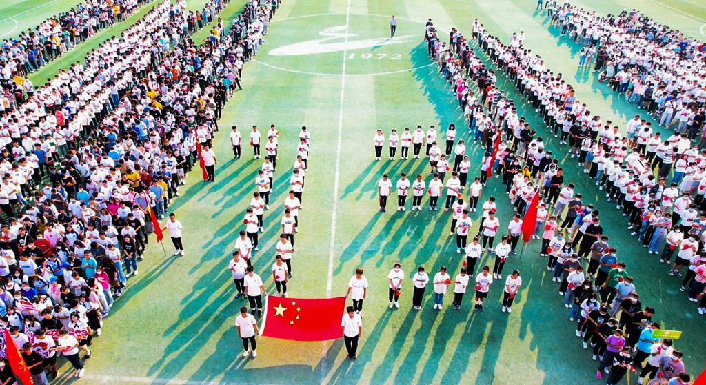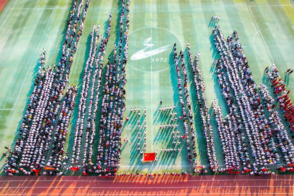 77779193永利新生代表73人排列成了一个巨大的“73”,挥舞着鲜艳的五星红旗,象征祖国历经73载,愈发繁荣富强。