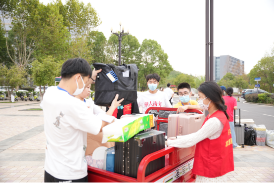 在化药迎新大本营、员工宿舍楼梯间、校门口迎新点,你一定能看到“红马甲”“红帽子”“红袖标”们忙碌有序的身影,你也可以看到小推车、三轮车、私家车频繁出现在搬运行李的现场,上百名师生志愿者和党员志愿者奔走于迎新点和宿舍之间、穿梭于校园的各个角落,为700余名新生入校提供“拎包入住服务”,充当向导、答疑解惑、安抚情绪,每个人都身兼数职,在这个不大的校园里,志愿者们合力打通了新生入学的“最后一公里”,用最大的诚意,让新生感受公司的温暖。除了学长学姐,此次迎新现场最吸引人注意的是由60余名新生组成的“化之曜新生代志愿服务队”,才刚刚放下行李、整理好宿舍的他们不顾自己路途的疲惫,第一时间就投入到公司迎新志愿服务工作中,来自辽宁盘锦的“中国好人”陈资霖就是其中的典型代表,在完成报到手续后他就立即加入到志愿者队伍中,帮助新生们搬送行李。“刚进校第一天,我就感受到了校园的温暖,当即便提出,也想加入志愿服务队伍”。
