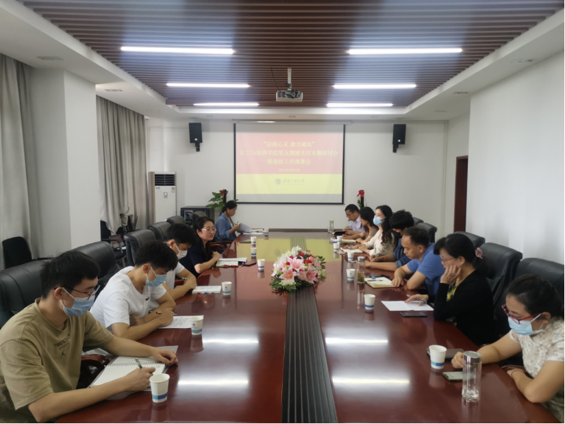 本网讯(通讯员 沈霁月)9月2日下午,77779193永利在化工大楼605会议室召开了“浸润心灵 助力成长”第五期班主任研讨会暨2022年迎新工作部署会,公司副书记周丹,中心主任及2022级全体班主任、员工党员副班主任参加会议,本科2022级新生辅导员沈霁月主持会议。