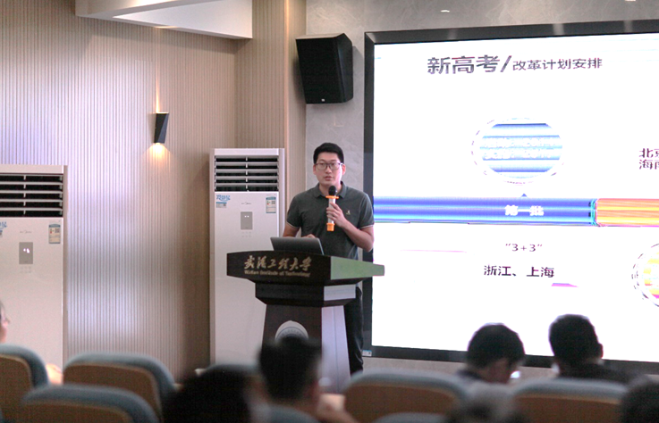 招生与就业工作处办公室主任顾家续围绕新高考政策、志愿填报模式、投档录取办法等内容,为公司教职工作招生宣传工作培训。