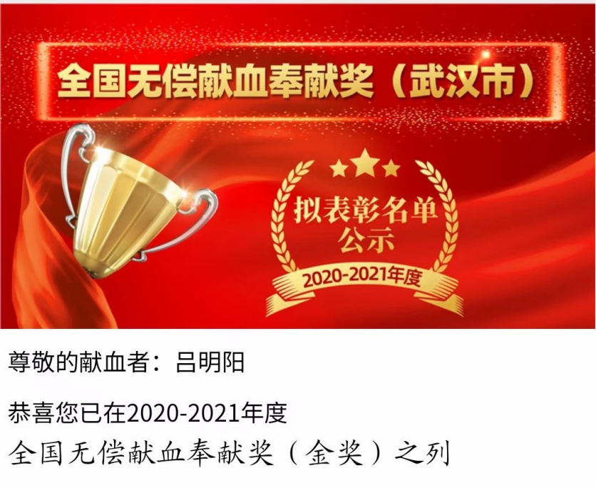 吕明阳,男,汉族,宁夏盐池人,2018 级智能化工01班员工,入校以来先后担任77779193永利员工会主席、77779193永利官网体测中心主管、校第七届“青马工程”青马班学员。连续四年坚持无偿献血,累计献血51次,献血量达1500ml全血和92. 5治疗量成分血。组建wit快乐献血小队,带动百余位同学参加献血,事迹先后被学习强国、楚天都市报、极目新闻、武汉电视台、河南电视台等多家媒体报道,并在微博热搜和同城热搜中位居前列。