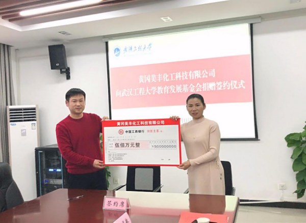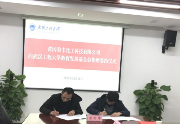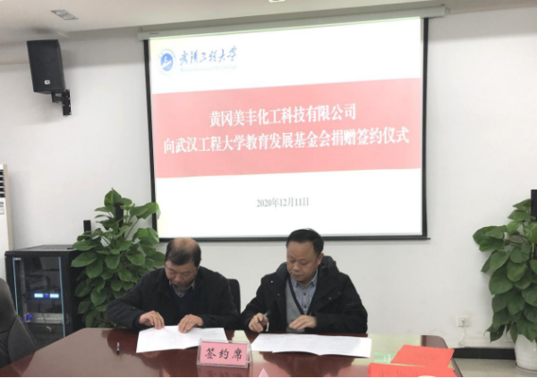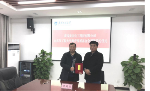 黄冈美丰化工科技有限公司董事长曾铁鸣先生介绍了公司的基本情况、发展现状及未来建设领域。曾董事长表示,此次500万元捐款主要用于建设光化学品工程与技术研究中心,希望校企双方能进一步加强深度合作,实现共同发展。
