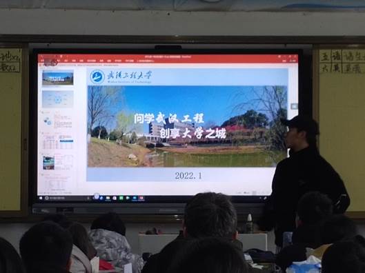 图为化药学子陈瑞环在襄阳市襄州区第一高级中学进行招生宣传