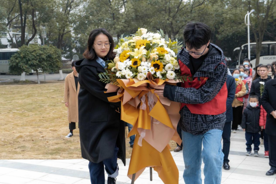 在场师生依次献花致敬并绕场一周,缅怀英雄许志伟。