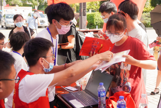 迎新第一天,公司就收到了新生陈恒君递交的入党申请书,公司党委书记王雪梅代表党组织接受了这名新生的入党申请书。新生何境霖独自一人前来报到,并积极投入到公司“志愿者”迎新服务。