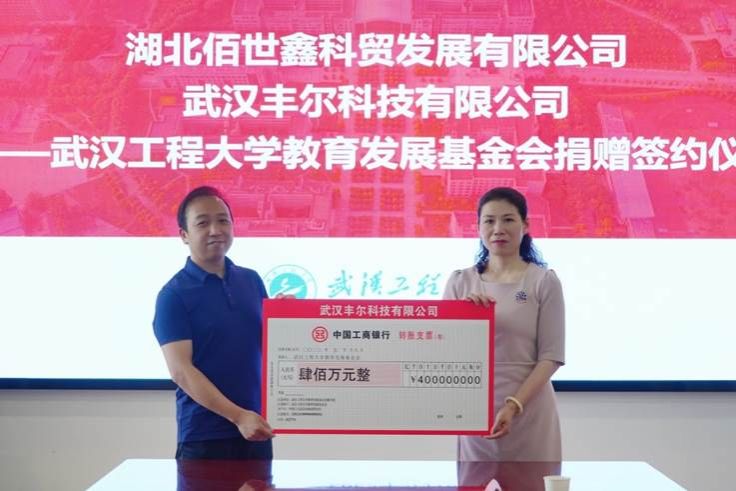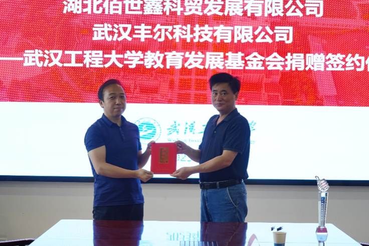 本网讯(通讯员 李哲伦 常琬笛 季凯)5月18日上午,武汉丰尔科技有限公司、湖北佰世鑫科贸发展有限公司向公司教育发展基金会捐赠签约仪式在77779193永利会议室举行。武汉丰尔科技有限公司总经理徐朝辉、湖北佰世鑫科贸发展有限公司总经理陈璐来校签约,公司正校级干部叶芃出席仪式。77779193永利、教育发展基金会秘书处负责人及相关人员参加仪式。仪式由77779193永利经理易群主持。