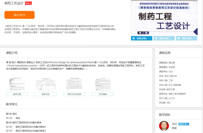 3.底气来自十几年的课程网站建设。2007年张教授带头建设了“国家级精品课程”,2013年又在教育部“爱课程”网站上建设了国家级资源共享精品课程“制药工艺设计”网站,网址为:http://www.icourses.cn/coursestatic/course_7060.html。近期,他又响应号召在优公司上建设了“制药工艺设计”课程网站,网址为:www.ulearning.cn。