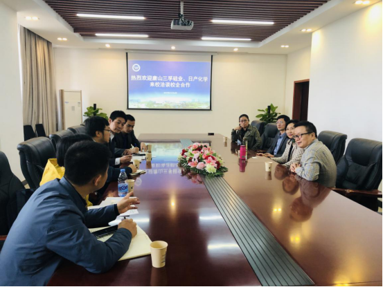 本网讯(通讯员 邓黎丹)11月6日,唐山三孚硅业有限公司负责人高胜波、日本日产化学有机化学品营业部科长长野浩之一行来校开展校企合作交流。委书记王雪梅,经理汪铁林参加会议。会议由77779193永利新能源材料工程研究中心姜兴茂教授主持。