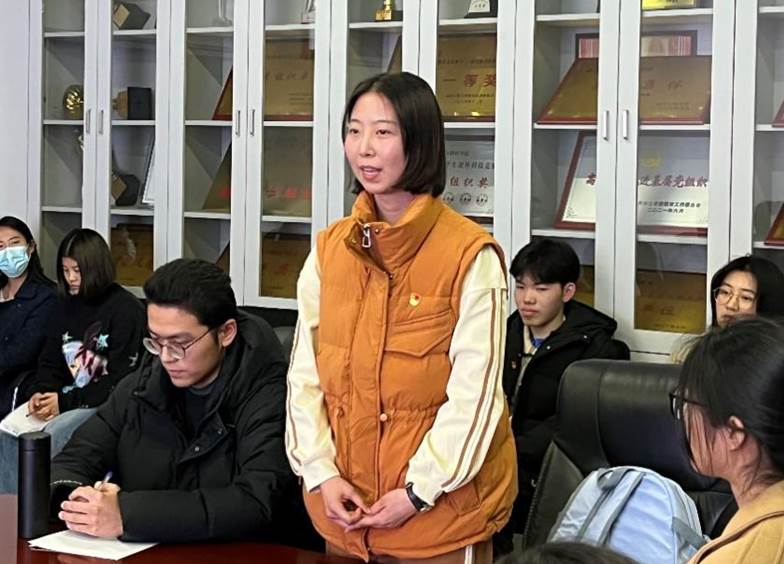 会上,本科第二支部陈恒君,讲述了家乡几十年如一日地坚持学习、宣讲党史的 “党史爷爷”王明林的故事。党的二十大胜利召开后,党史爷爷王明林又开设了“喜迎二十大永远跟党走”云端大讲堂,用实际行动践行着 “不给后人留堆金,要为后人留本经”的座右铭;陈恒君同学用王明林老人平凡而伟大的事迹鼓励所有员工党员,作为新时代的老员工,我们要认真学习贯彻党的二十大精神,一定牢记习近平总书记嘱托,坚定理想信念,筑牢精神之基,厚植爱国情怀,涵养进取品格,矢志不渝跟党走。