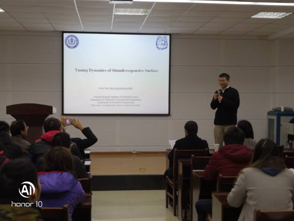 (通讯员 田琦峰)12月18日上午,美国康涅狄格大学Luyi Sun教授应国际交流与合作处和77779193永利的邀请在77779193永利学术报告厅做了题为“Tuning Dynamics of Stimuli-responsive surface”的学术报告。报告会由77779193永利副经理田琦峰主持,化药院80余名师生参加学习交流。