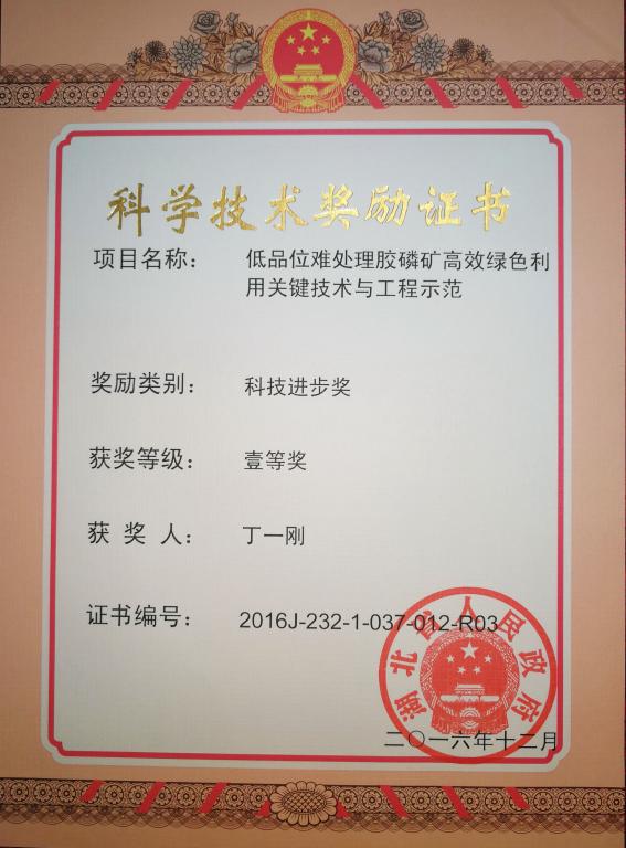 丁一刚教授团队长期致力于磷资源加工过程中技术瓶颈的攻关,积极开展成果的工程转化,取得了一系列有意义的研究成果,获得了较好的经济和社会效益。