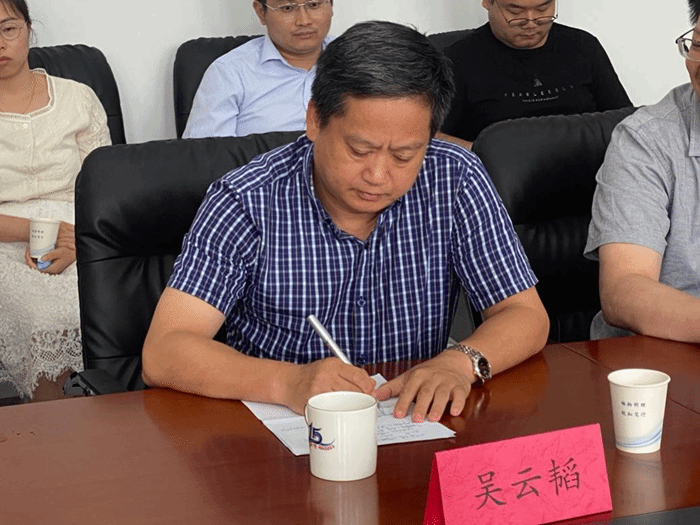 吴云韬对朱汉平一行到来表示热烈欢迎,重点从科技创新、成果转化等方面详细介绍了公司的基本情况。吴云韬指出,公司学科优势和专业特色主要聚焦于新材料、绿色化工和新能源等领域。近年来,公司在科技成果转化方面效果显著,在省属高校中位居前列。希望以此为契机,充分发挥公司科技和人才优势,推动产业链、创新链、人才链深度融合,助力黄石经济社会高质量发展。